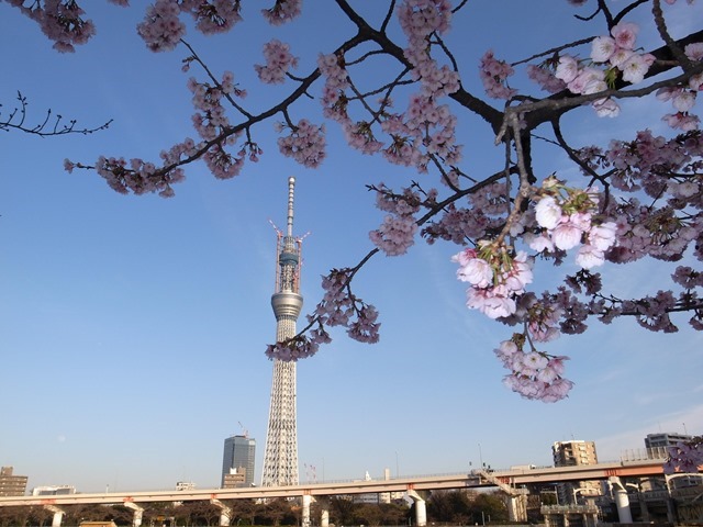桜と建設中スカイツリー