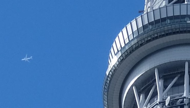 スカイツリーの上空にはいつも飛行機が飛んでいます。